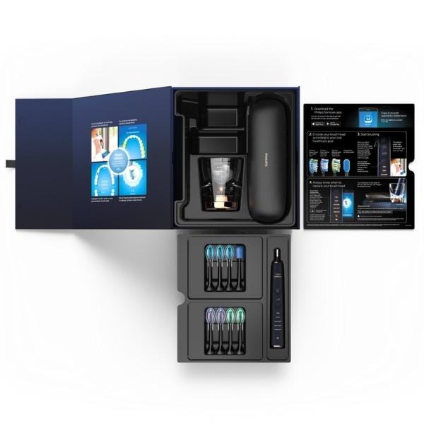 Hộp sản phẩm Philips Sonicare 9700 DiamondClean Smart cứng cáp, sang trọng rất thích hợp làm món quà cao cấp đê tặng đối tác, cấp trên bạn bè