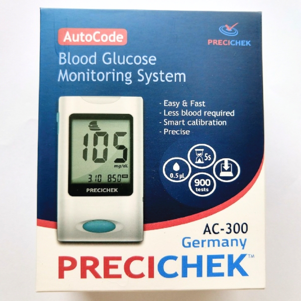 Máy đo đường huyết Precichek AC-300 với bộ nhớ 999 kết quả, đo nhanh 5 giây và chính xác