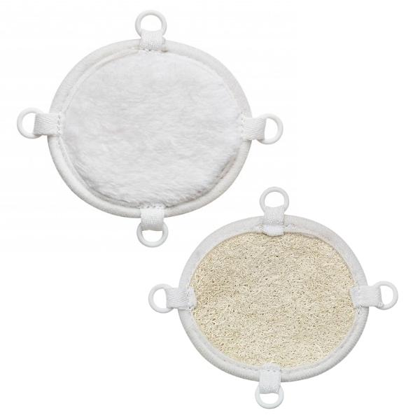 Miếng đệm massage 2 trong 1: chất liệu xơ mướp tự nhiên giúp tẩy tế bào chết cho da. Chất liệu vi sợi mềm đảm bảo tự massage dễ chịu