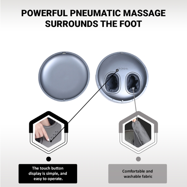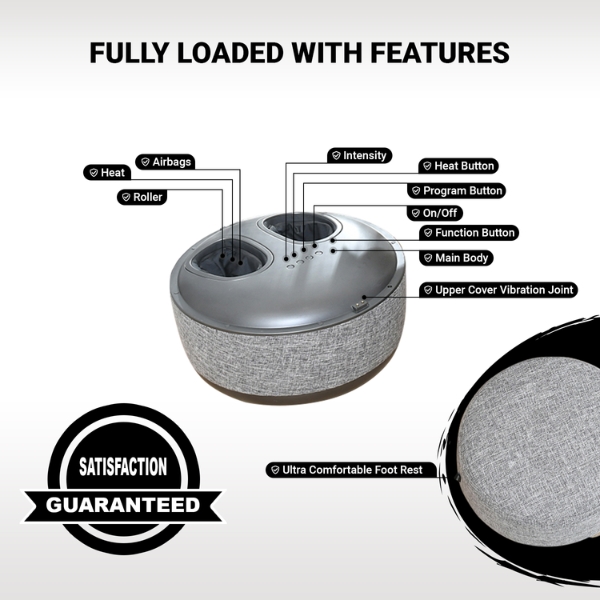 Với túi khí độc đáo và con lăn massage để giảm căng thẳng hoặc đau đớn cũng như chức năng sưởi ấm rất cần thiết đi kèm với máy massage chân giúp giảm đau cơ ở bàn chân, thúc đẩy lưu thông máu và thư giãn hoàn toàn toàn bộ cơ thể bạn.