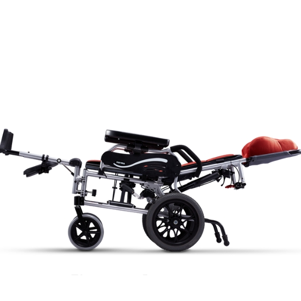 Xe lăn KM 5001 có thể ngả ra sau một góc 161 độ, giúp người dùng chuyển tư thế từ ngồi sang nằm khi cần thư giãn, đồng thời người chăm sóc có thể thực hiện các thao tác điều dưỡng như lật người, xoa bóp, tắm rửa, thay tã, v.v ngay trên xe.